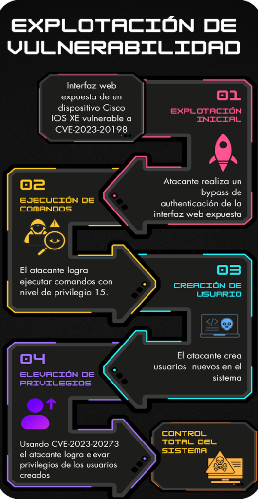 A mediados de octubre de 2023, CISCO publicó la vulnerabilidad CVE-2023-20198 que afecta la interfaz de usuario (Web UI) del software Cisco IOS XE.