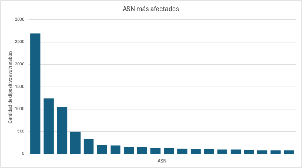 Gráfica 2. Dispositivos vulnerados discriminados por ASN según prefijo IP asignado.