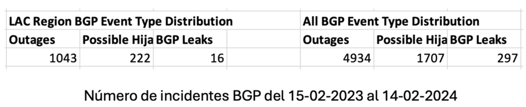 PRINCIPALES SUCESOS. Además de sumarizar la información se aprecian los tres principales sucesos, los cuales son: posibles secuestros de red, interrupciones BGP y fugas de rutas.