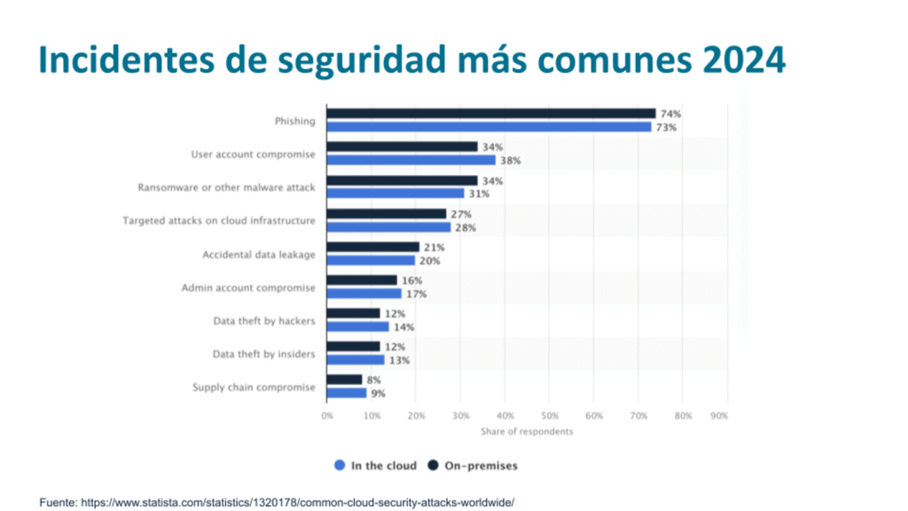 Los ataques no distinguen entre servidores propios o infraestructuras en la nube: ambas están expuestas. Este año, los incidentes más reportados por el sitio Statista coinciden con los registros por el CSIRT DE LACNIC: