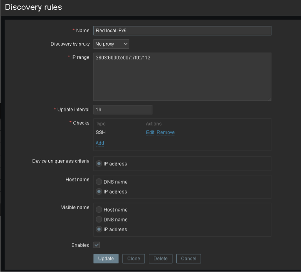 Configuración de una regla de descubrimiento de red en Zabbix para IPv6