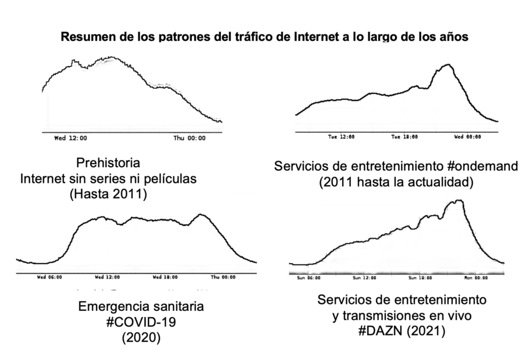 A lo largo de los años, el tráfico de Internet en los IXP evolucionó de ser predominantemente un intercambio entre los ISP a estar dominado por los grandes proveedores de contenido y las CDN, con un enfoque cada vez más centrado en la transmisión de videos. La pandemia del COVID-19 aceleró esta tendencia y llevó a un crecimiento sin precedentes en el tráfico. Por último, los servicios de transmisión en vivo para espectáculos deportivos, como DAZN y Prime Video, cambiaron aún más el paisaje al introducir nuevos desafíos para la gestión de picos de tráfico extremadamente altos y concentrados en períodos cortos. La respuesta de los IXP fue aumentar la capacidad y optimizar las infraestructuras para satisfacer estas nuevas demandas.