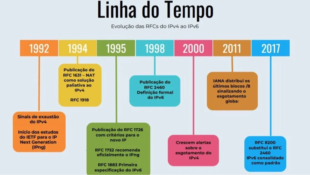 At the same time, a group was analyzing proposals for a new version of the Internet Protocol (IP Next Generation or IPng), an effort that culminated in 1995 with RFC 1883, the first technical document describing what would become IPv6. This specification was authored by Steve Deering (Xerox PARC) and Bob Hinden (Ipsilon Networks), two pioneers who deserve recognition for their foresight.