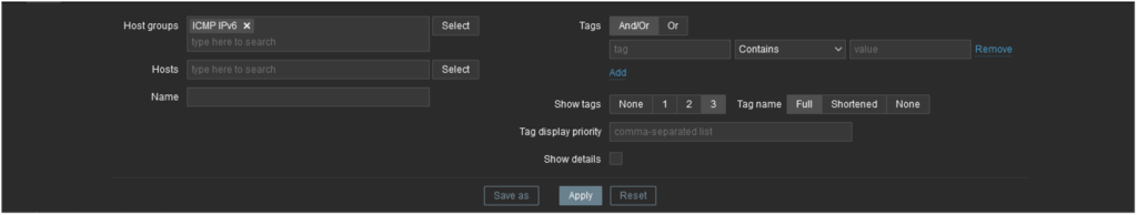 Una característica que resulta de mucha utilidad en Zabbix, son los filtros que presenta para la revisión de datos de acuerdo con nuestras necesidades. Esto facilita el como podamos interpretar los sensores y recursos IPv6.