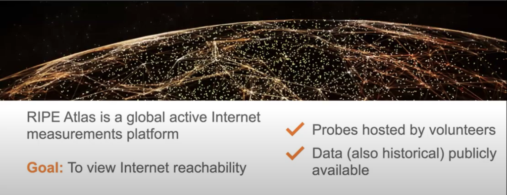 RIPE Atlas es la red de medición de Internet más grande jamás creada. Se basa en una red global de sondas que miden la conectividad y la accesibilidad de Internet. Con esta plataforma se logra una comprensión sin precedentes del estado de Internet en tiempo real.
