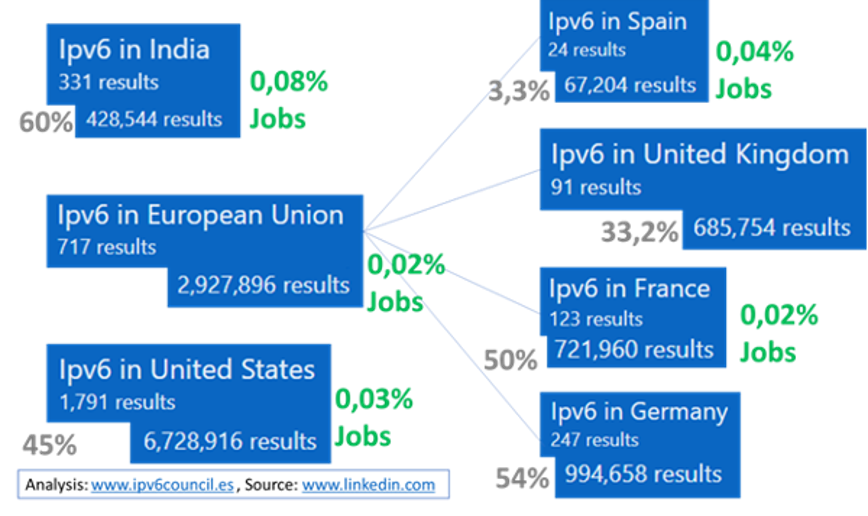 Fuente: IPv6 Council España. Estudio basado en anuncios LinkedIN (Junio 2022)