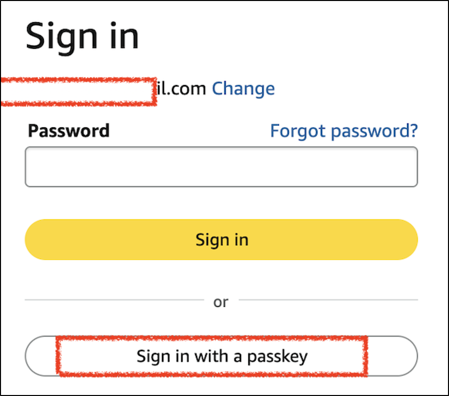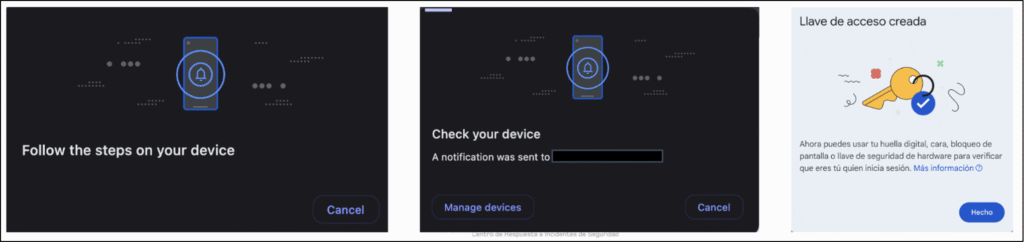 Ejemplos de accesos utilizando Passkeys en Amazon y en Google: