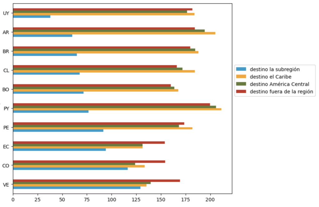 À primeira vista, analisamos a latência média de cada país para o resto da região, conforme pode ser visto no gráfico a seguir.