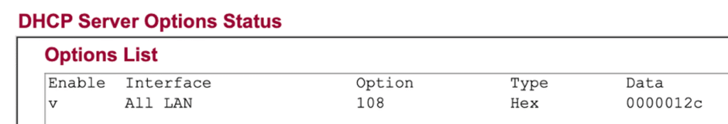 Exemplo de configuração da opção 108 em um servidor DHCPv4