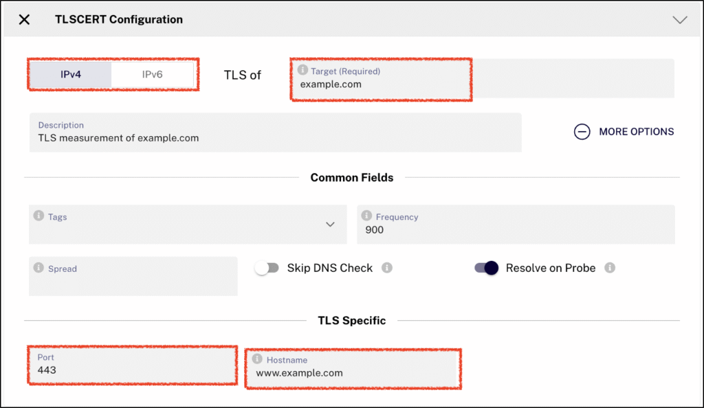 Esta opción resulta valiosa para efectuar mediciones DNS altamente personalizadas, lo cual facilita el análisis de la variabilidad de las respuestas según la ubicación geográfica de los sensores. Adicionalmente, la programación periódica de estas mediciones permite rastrear la evolución de las direcciones IP utilizadas por atacantes y supervisar la vida útil de dominios maliciosos.